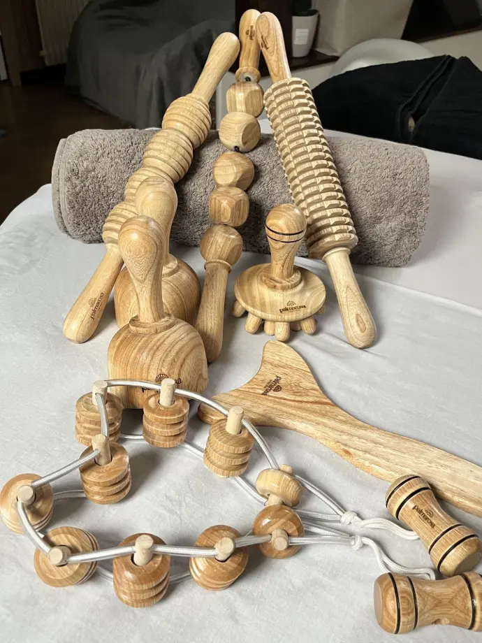 - MaderoPourElles Cure où à la carte Massage amincissant avec des outils en bois spécialement conçu pour masser en profondeur les tissus de la peau, stimulant la circulation sanguine et lymphatique, réduction de la cellulite